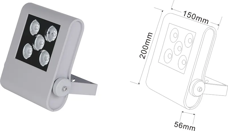 उच्च-पावर (100w-500w) फराकिलो बीमा वितरणको साथ क्षेत्र प्रकाश।